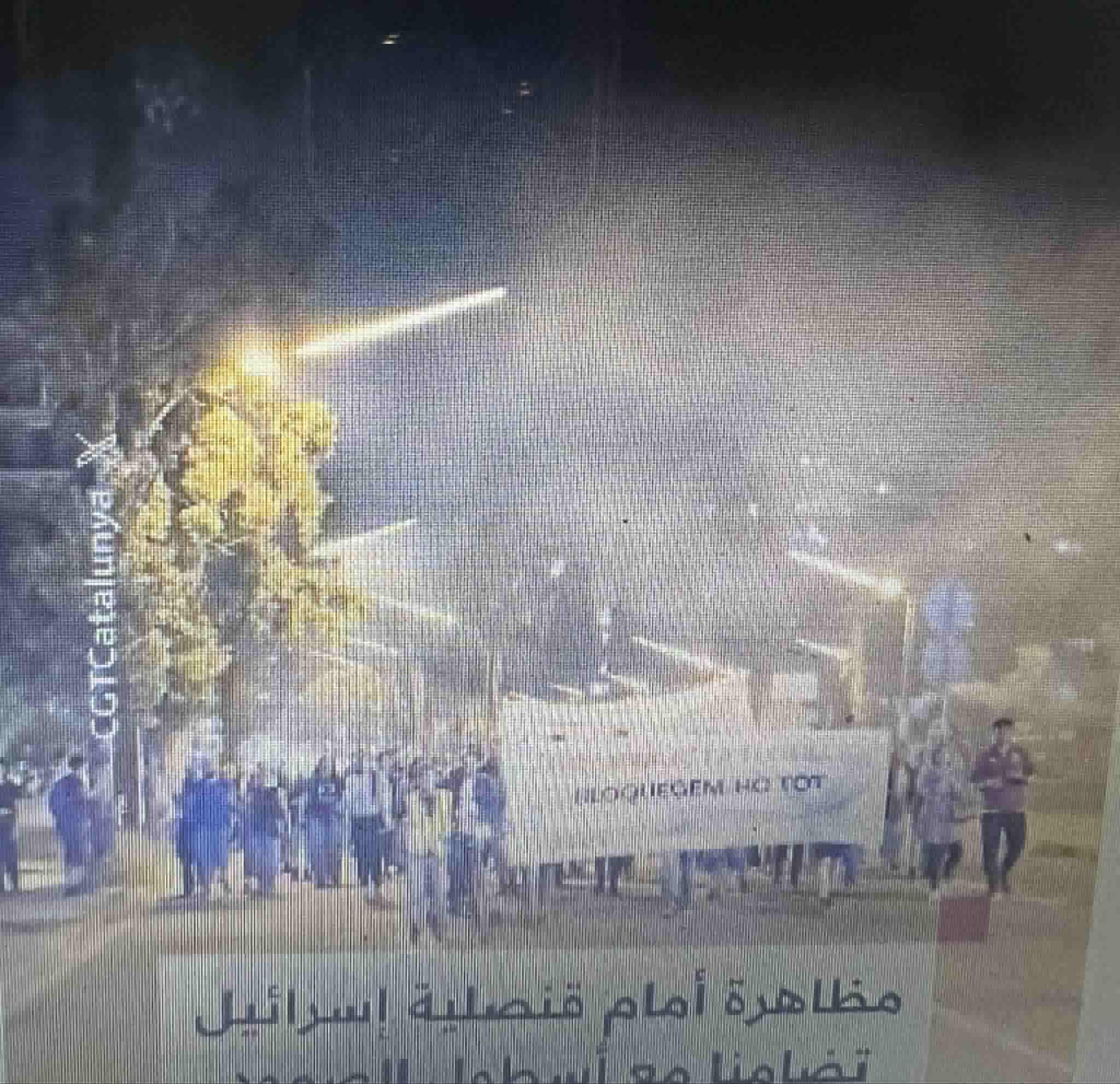 محتجون يلقون قنابل غاز على مبنى القنصلية الإسرائيلية في برشلونة ويضرمون النار في الطرقات المؤدية إلى مقر القنصلية