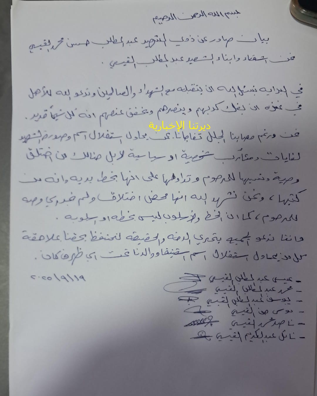 ذوو المرحوم القيسي ينفون الوصية المنسوبة له: محض إختلاق – بيان