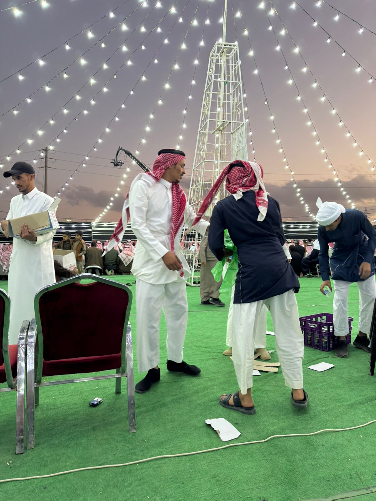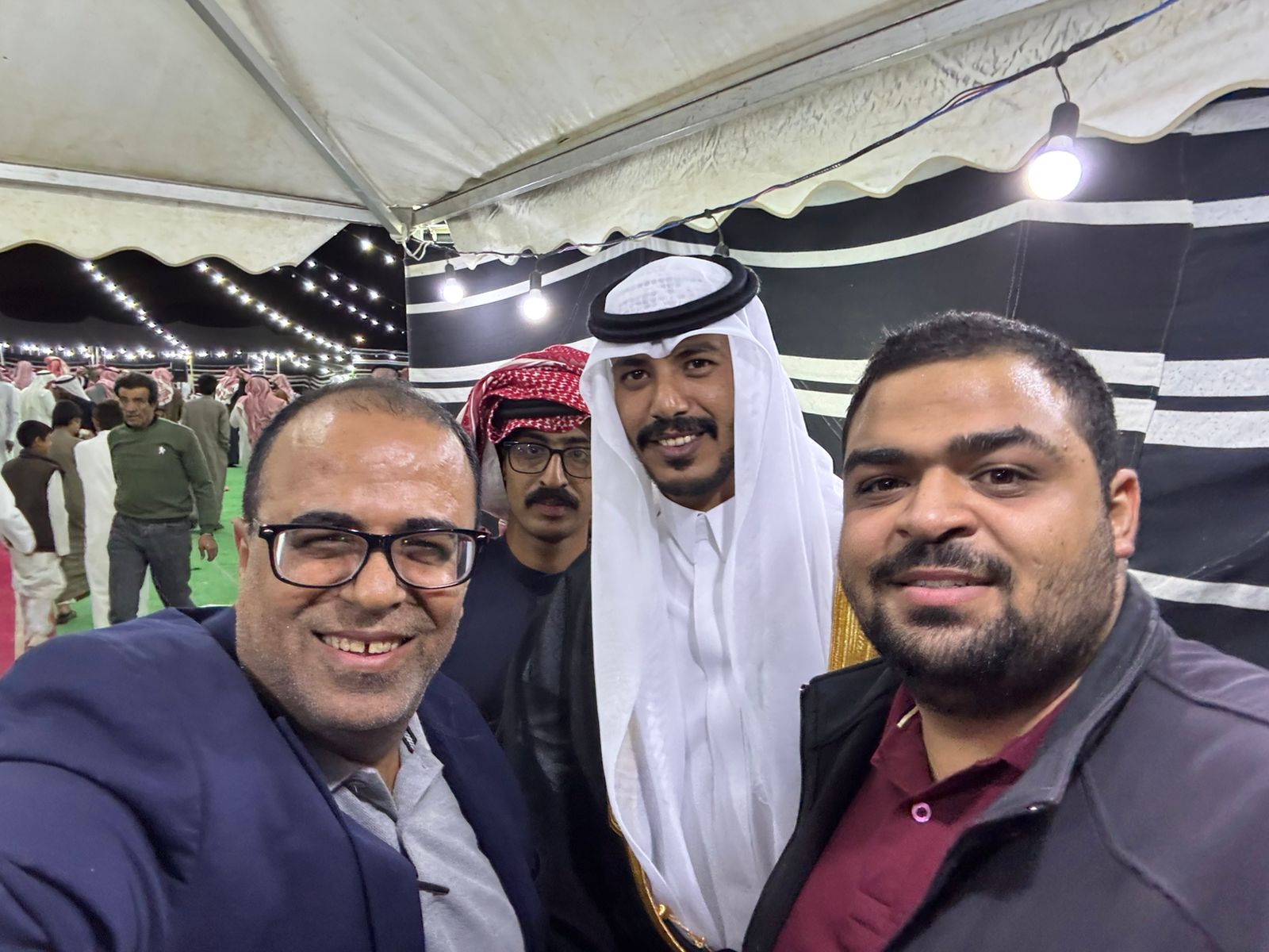 الشعراء عندما حضروا بيت الفرح ، فقد اعتلوا المنصة الشعرية التي حضرها والد العريس و بحضور مشرف ومهيب من مدعوين مهتمين ، وسط تصفيق وترحيب وتهاني للعريس ووالده واخوانه .