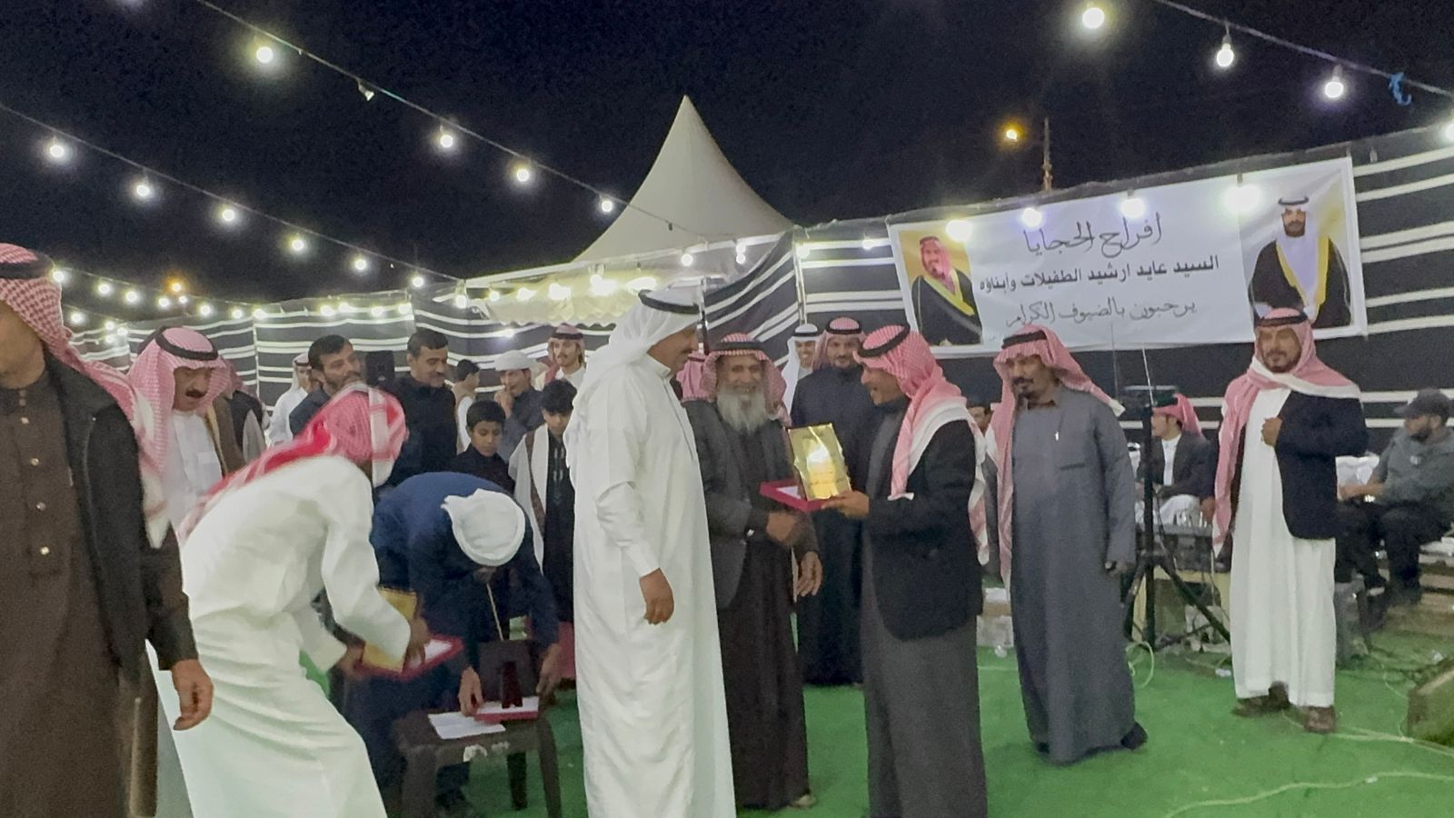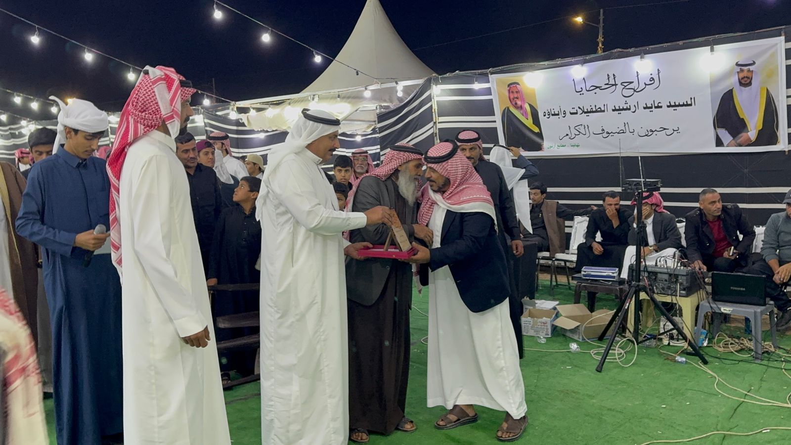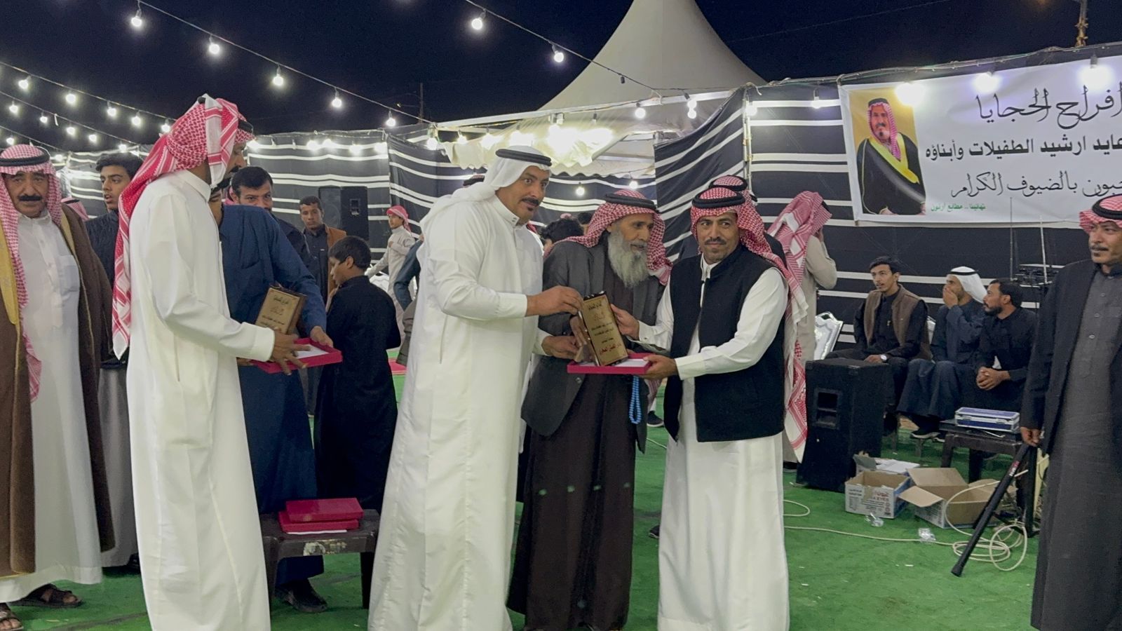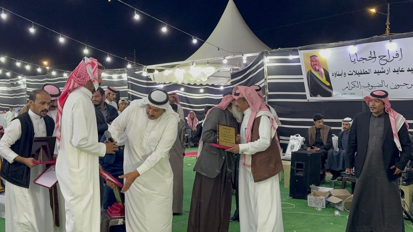 وفي نهاية حفل العرس الذي تميز بحسن التنظيم ، قام الاخ الأكبر للعريس والشاعر علي الطفيلات الذي بادر بالفكرة بجمع شعراء الوطن بإحياء الموروث الثقافي و نيابة عن والدهم ، قام ،بتكريم الشعراء بدروع تذكارية للشعراء كل باسمه .