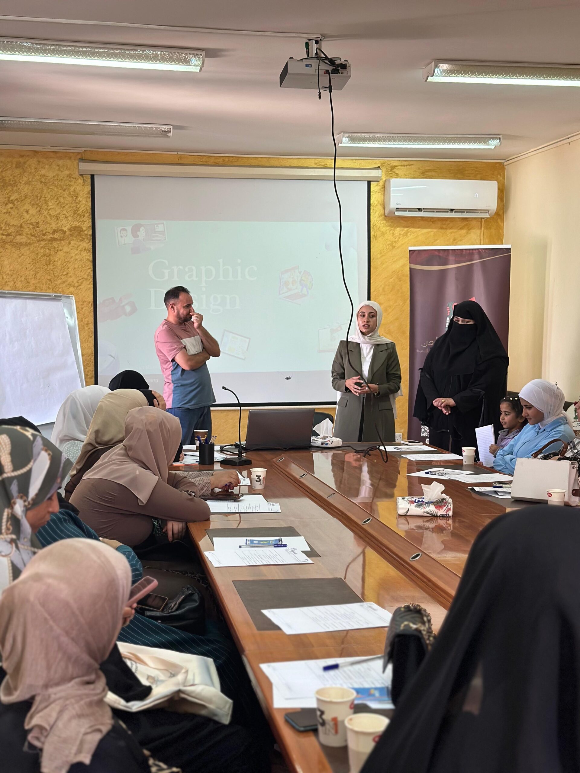وقد اشتملت ورشة التدريبية ، على شرح أساسيات التصميم الجرافيكي بالمادة النظرية، إضافة إلى التطبيقات العملية التي تضمنت تصميم البوسترات الإعلانية ومواد المنصات الرقمية.